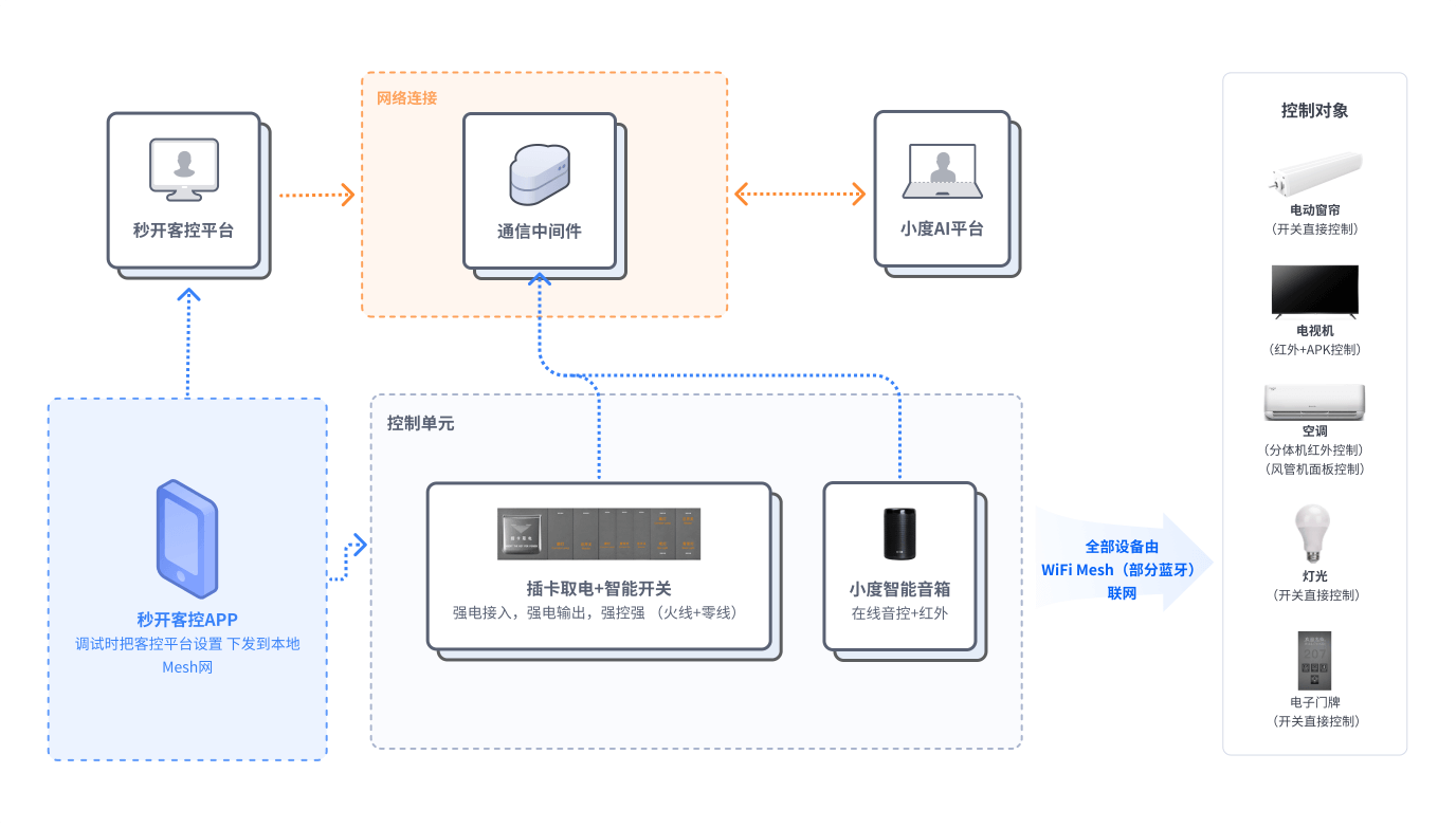 WiFi自组网连接,无需重新布线,只需更换开关面板就可以完成改造。